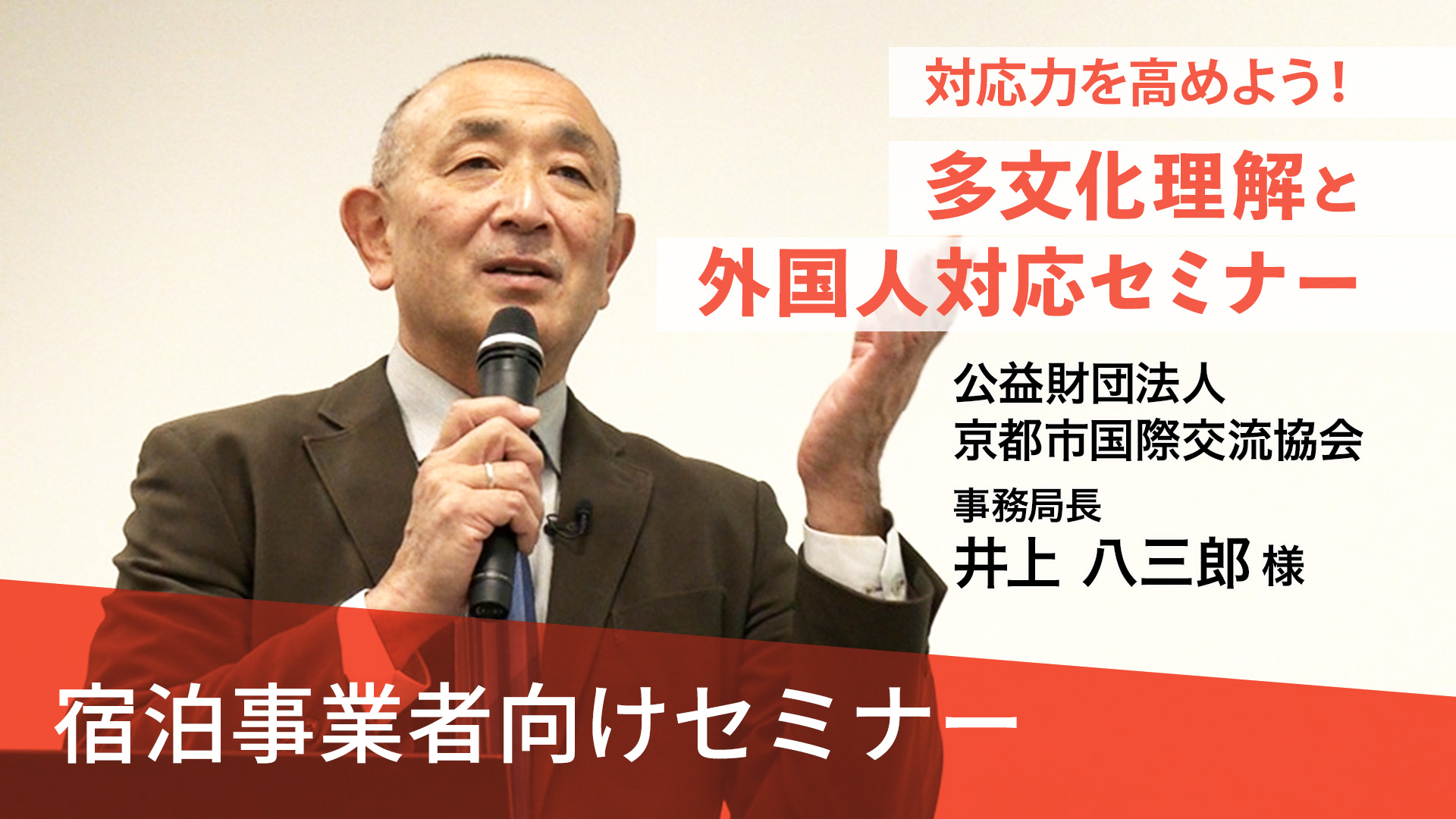 近年、宿泊業界では外国人スタッフの増加や、さまざまな国からのお客様の来訪に伴い、多文化理解と柔軟な対応力がこれまで以上に求められています。 本セミナーでは、京都市国際交流協会の井上八三郎事務局長を講師に迎え、京都で暮らす外国人をサポートした経験をもとに、次の内容をわかりやすく解説します。