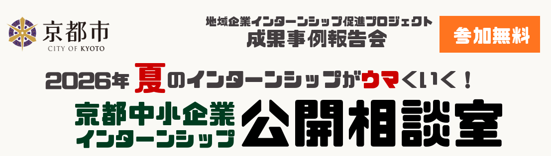 【京都市】「京都中小企業インターンシップ公開相談室」のお知らせ(3月19日)