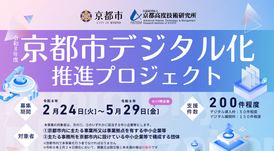 令和8年度「京都市デジタル化推進プロジェクト」支援対象者の募集(2月24日~5月29日)